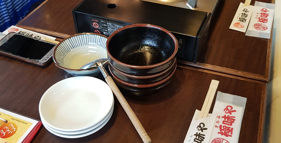 The meat was prepared sliced with a couple of hot green pepper on side. You have to entertain yourself by cooking it on the hot stone for a few seconds. The meat was so good and it was such a relief to have some meat taste around Fukuoka while most of the time we were only to have fish and chicken.